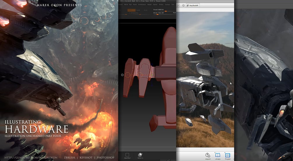 Its a standalone tutorial representing a vertical slice through mu workflow. Starting with sculpting from scratch in Zbrush through Keyshot renderings, to final detailing in Photoshop. Its a similar process to the one shown in previous episodes but this time I talk a bit more about design choices specific to a machine concept. And of course as a bonus I showing you how I created poster for this episode using newly created assets.